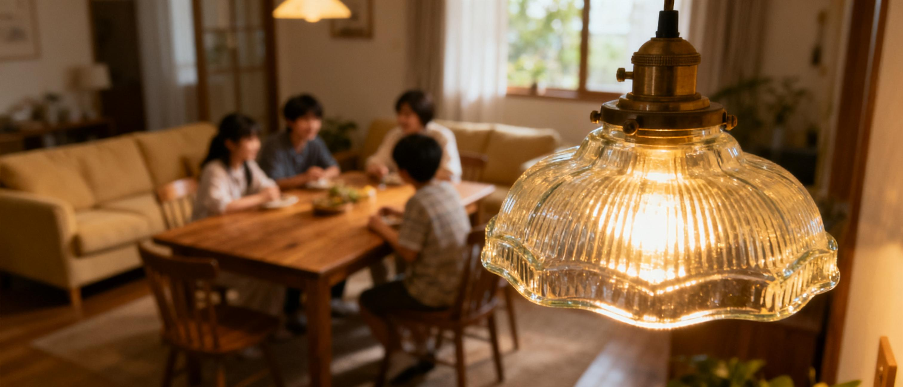 仿真石やガラス、陶器など多彩な素材を使用。灯りに遊び心と個性をプラスし、空間を楽しく彩ります。