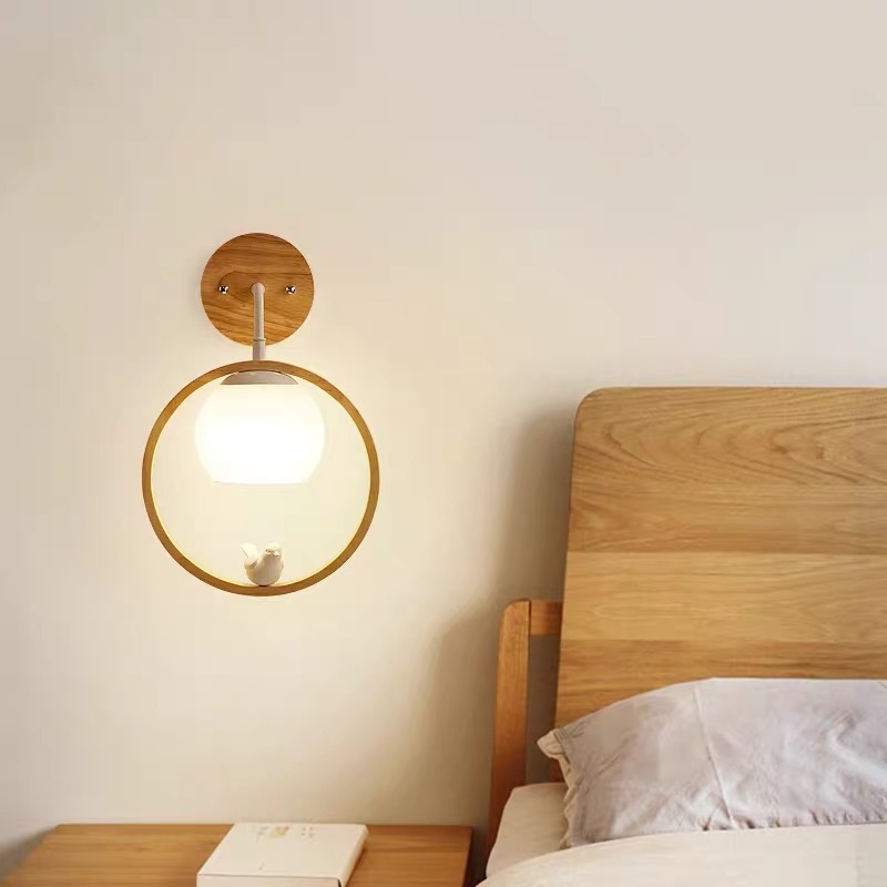 小鳥デザイン壁掛けライト アイアン×木の北欧風ブラケット照明 間接照明でお洒落な壁飾り