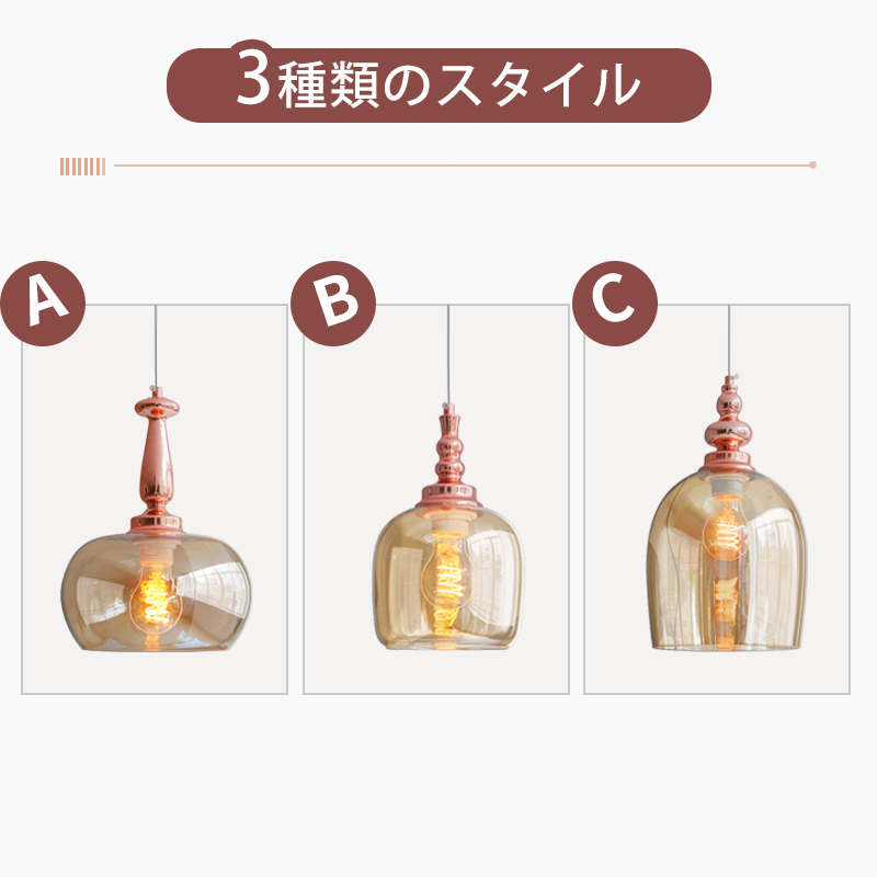 3 種造型の琥珀グラデーションガラスシェードを提供,ローズ銅トップ座と組み合わせ,ラグジュアリーインダストリアル風・モダンレトロ風などソフトデコに適合;多盏組み合わせて懸架すると,異なる造型 + サイズで高低錯綜の視覚的層次を打造,空間の装飾高級感を向上させます。