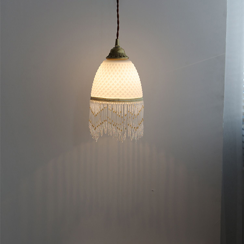 ガラスシェードを通して光が柔らかく広がり、