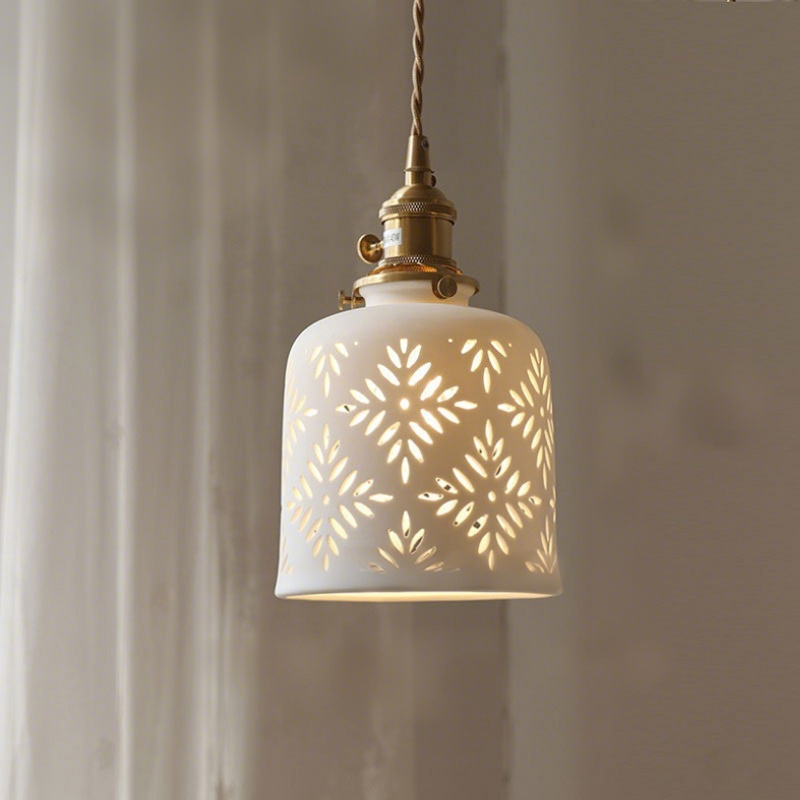 ペンダントライト 北欧 ダイニング おしゃれ 口金E26 陶器 磁器 筒型 花紋 食卓用 天井照明