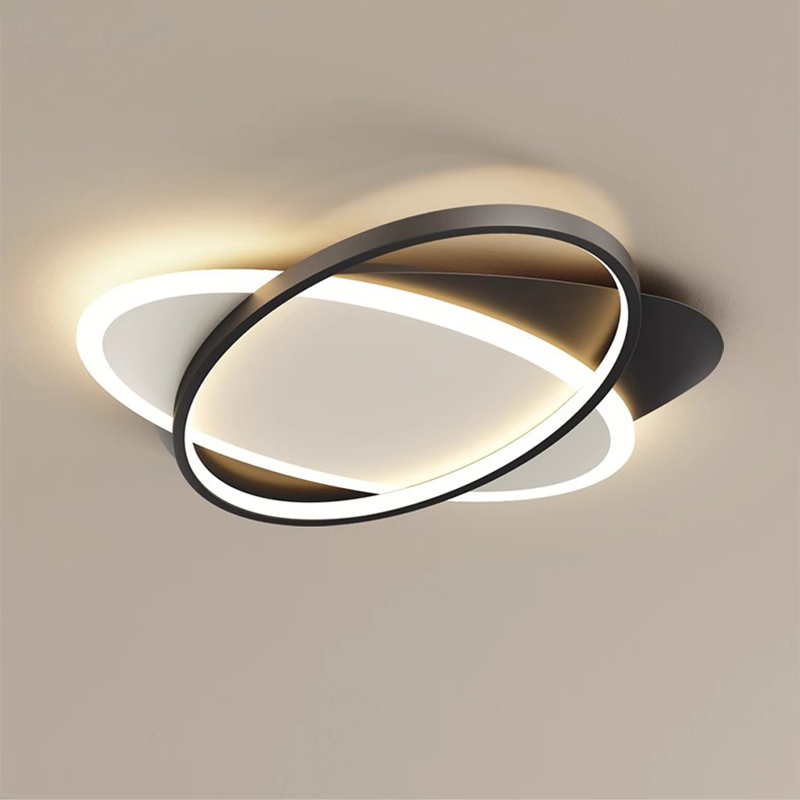 LED シーリングライト モダン交差ダブルリング マットブラック金属フレーム・柔らかな間接光 リビング・寝室向けアートデザイン照明